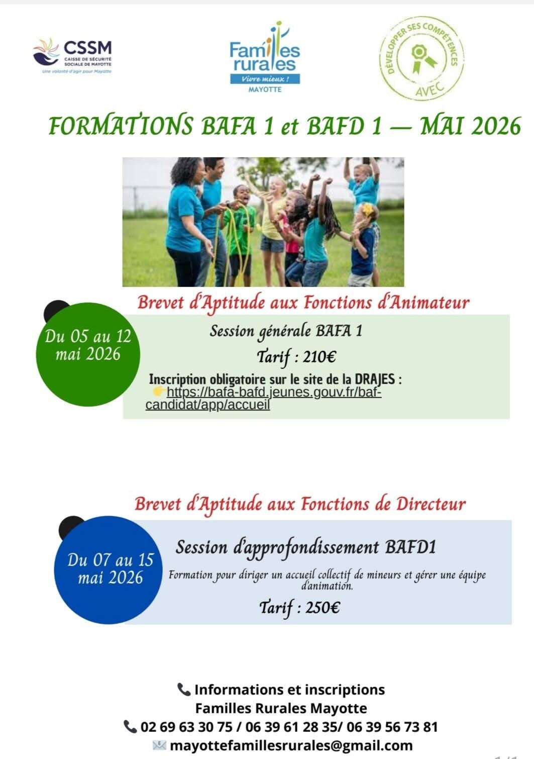 la Fédération Familles Rurales de Mayotte vous propose deux formations au mois de mai en internat ( au gîte Villa Ravoay à Kani kéli) :